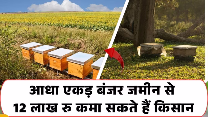 इस तरह किसानों को दोहरा लाभ मिलता है, बंजर जमीन से मधुमक्खी पालन की कमाई। आसपास की फसलों की पैदावार में बढ़ोतरी। आइए जानते हैं कि आधा एकड़ जमीन में मधुमक्खी पालन करके ₹12 लाख तक की कमाई कैसे की जा सकती है।